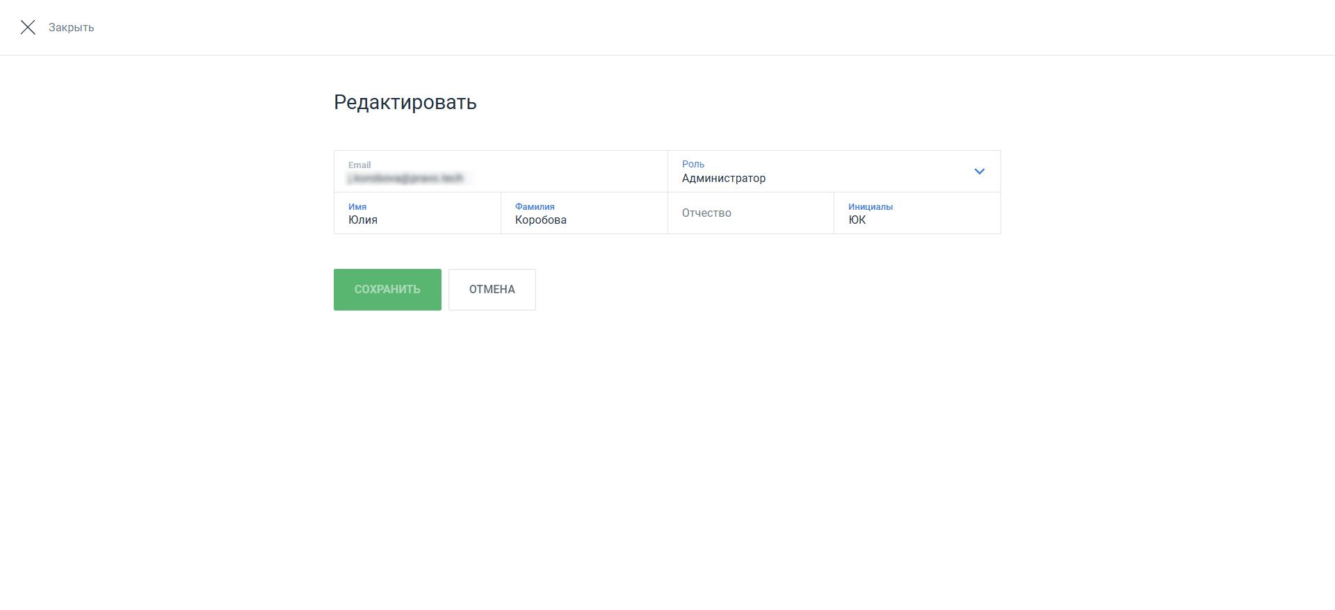 После внесения изменений нажмите кнопку Сохранить. Учетная запись пользователя будет отредактирована.